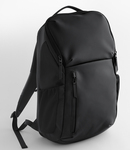 Matte-look PU coating.Padded grab handles.Padded adjustable air mesh shoulder straps.Adjustable chest strap.Padded back panel.Luggage strap.Top zip pocket.Front zip pocket.Elasticated side pockets.Internal organiser section.Internal key clip.Rear padded laptop compartment, compatible up to 16".Tear out label Capacity 28 litres.